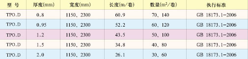 1.產(chǎn)品構(gòu)成 TPO復(fù)合防水卷材是以TPO橡膠為主要原料作為防水芯層,兩表面有無(wú)紡布做粘接層,采用特殊工藝和傳統(tǒng)設(shè)備加工而成的的一種復(fù)合型防水材料 2.產(chǎn)品特點(diǎn) 三大高性能優(yōu)點(diǎn): a. 耐老化性好:TPO橡膠本身性能耐紫外線;臭氧性能好,再加上抗老化劑、抗氧劑、紫外線吸收劑、光穩(wěn)定劑等加之輔助,用它做TPO復(fù)合防水卷材的防水芯層,可大大提高防水卷材的使用壽命。 b. 柔軟性好:TPO復(fù)合防水卷材具有橡膠一樣的柔軟性和隨服性,特別是在零下40攝氏度低溫條件下柔軟性仍能 保持柔軟性基本不變,特別適宜低溫的冬季和結(jié)構(gòu)復(fù)雜的防水工程施工。 c. 高延伸:TPO橡膠延伸率可達(dá)400%-800%,變形能力強(qiáng),可有效防止零伸展。 取其他材料之精髓: d. 施工后的TPO復(fù)合防水卷材通過(guò)上 表面無(wú)紡布可直接進(jìn)行裝飾、裝修(如貼瓷磚,鑲地板磚等,特別是坡屋頂粘彩瓦) e. TPO復(fù)合防水卷材可以在潮濕基層上施工,只要沒(méi)有明水即可施工,且保證工程質(zhì)量,特別地下防水,可提前工期。 f. 該產(chǎn)品無(wú)害、無(wú)毒、無(wú)污染,屬綠色環(huán)保型產(chǎn)品。 3.使用范圍 該產(chǎn)品適用于建筑、水利、環(huán)保和交通等領(lǐng)域的防水、防滲、防潮、隔汽和防污染工程。如建筑工程:屋面、地下、廁浴間等;水利工程:水庫(kù)、堤 壩、圍堰、渠道等;環(huán)保工程:垃圾填埋場(chǎng)、污水處理廠、冶金化工污染物堆放場(chǎng)等;交通工程:橋梁、地鐵、公路、鐵路、洞體、渠道等;園林工程:屋頂花園、種植屋面、園林小品等。 4.產(chǎn)品 規(guī)格(依據(jù)工程需要和國(guó)家有關(guān)規(guī)定在下列規(guī)格中選擇,如有特殊要求另與我公司商定)
