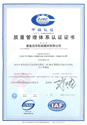 質(zhì)量管理體系認證證書